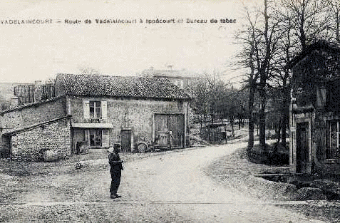 La rue se situe dans le bas du village, sur la RD20 en direction d'Ippécourt, pas beaucoup de changement, mise à part la voie ferrée au premier plan sur la carte n&b qui a disparu